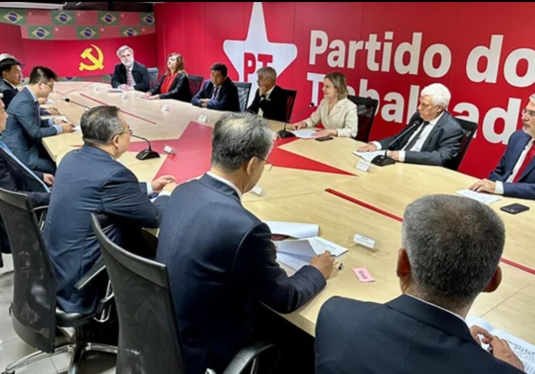 O PT vem assinando, nos últimos tempos, acordo de cooperação com diversos partidos comunistas do mundo, como o do Vietnã, Cuba e por óbvio, China. No dia 20 de setembro de 2023, Gleisi Hoffmann recebeu na sede do partido comitiva chinesa para firmar o “Acordo de entendimento sobre o intercâmbio e a cooperação” com o Partido Comunista Chinês. Além da presidente do Partido dos Trabalhadores, era parte da comitiva brasileira a Sra Mônica Valente, esposa de Delúbio Soares (sim o tesoureiro do Mensalão do PT) e, o mais importante: Diretora Executiva do Foro de São Paulo, como podemos ver na foto:
