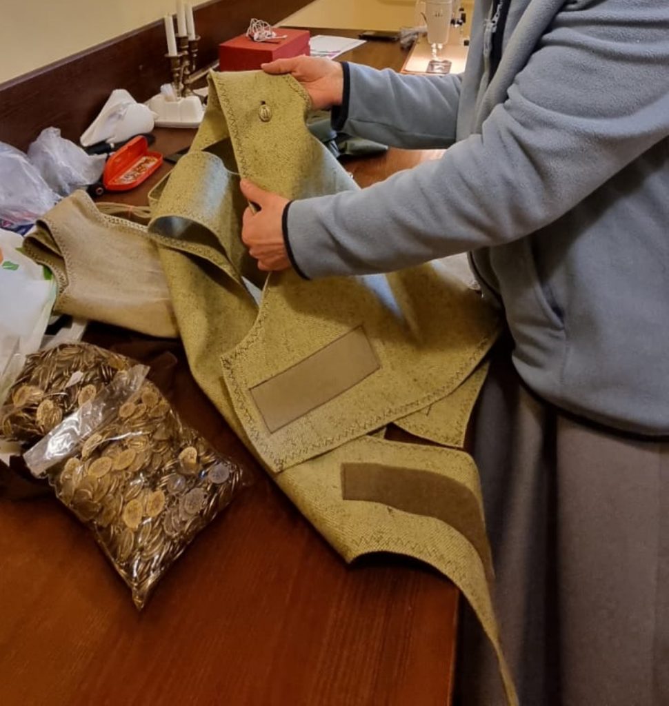 Medalha Milagrosa colocada num colete de soldado ucraniano.